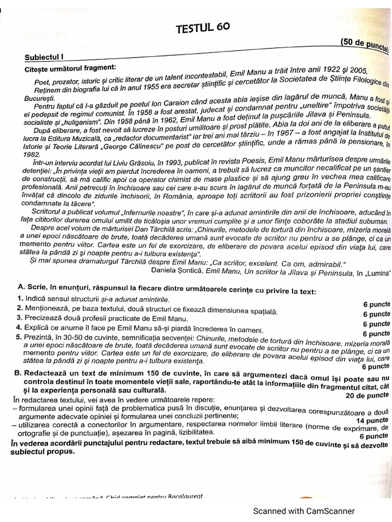 invederea acordarii punctajului pentru redactare, textultrebuie s@ alba minimum 50 de cuvinte $i s@ dezvole