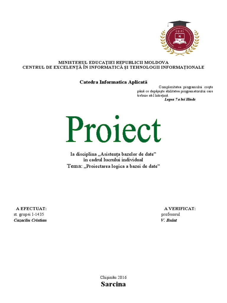 Sarcina: Catedra Informatica Aplicată
