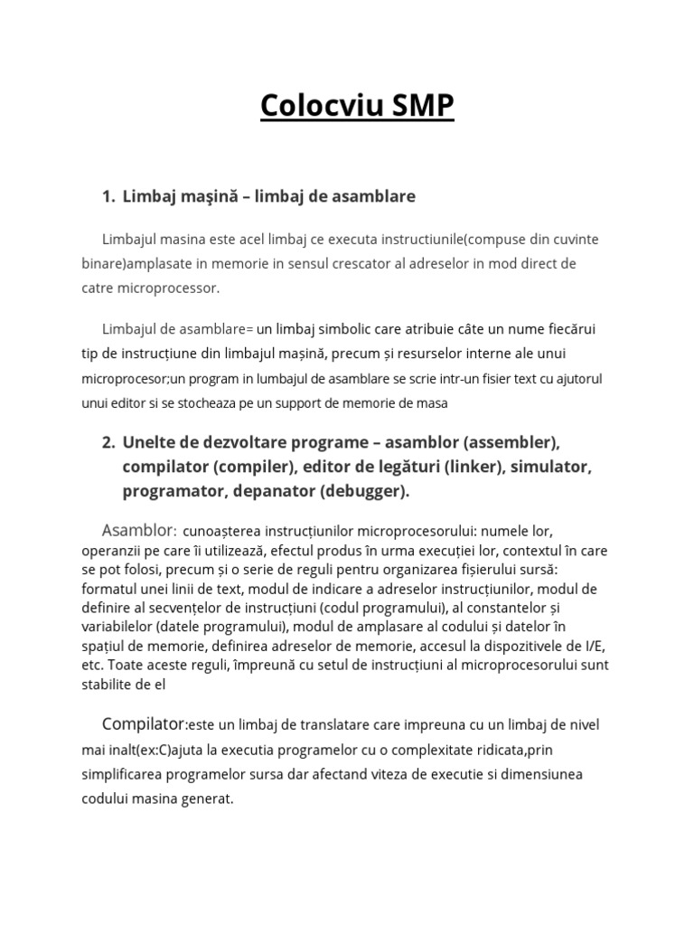 2. Unelte de dezvoltare programe – asamblor (assembler),