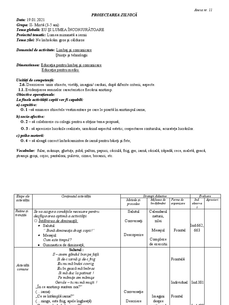 O. 1 –să enumere obiectele vestimentare pe care le poartă în anotimpul iarna;