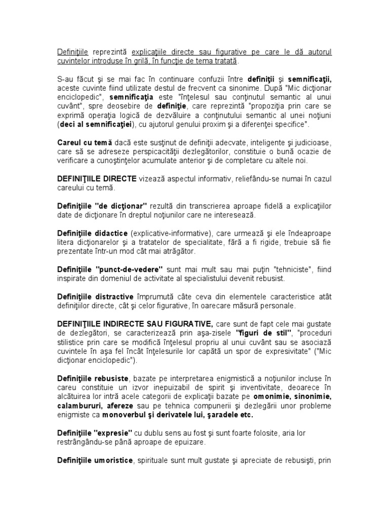 definiţiilor directe, cât şi celor figurative, în oarecare măsură personale.
