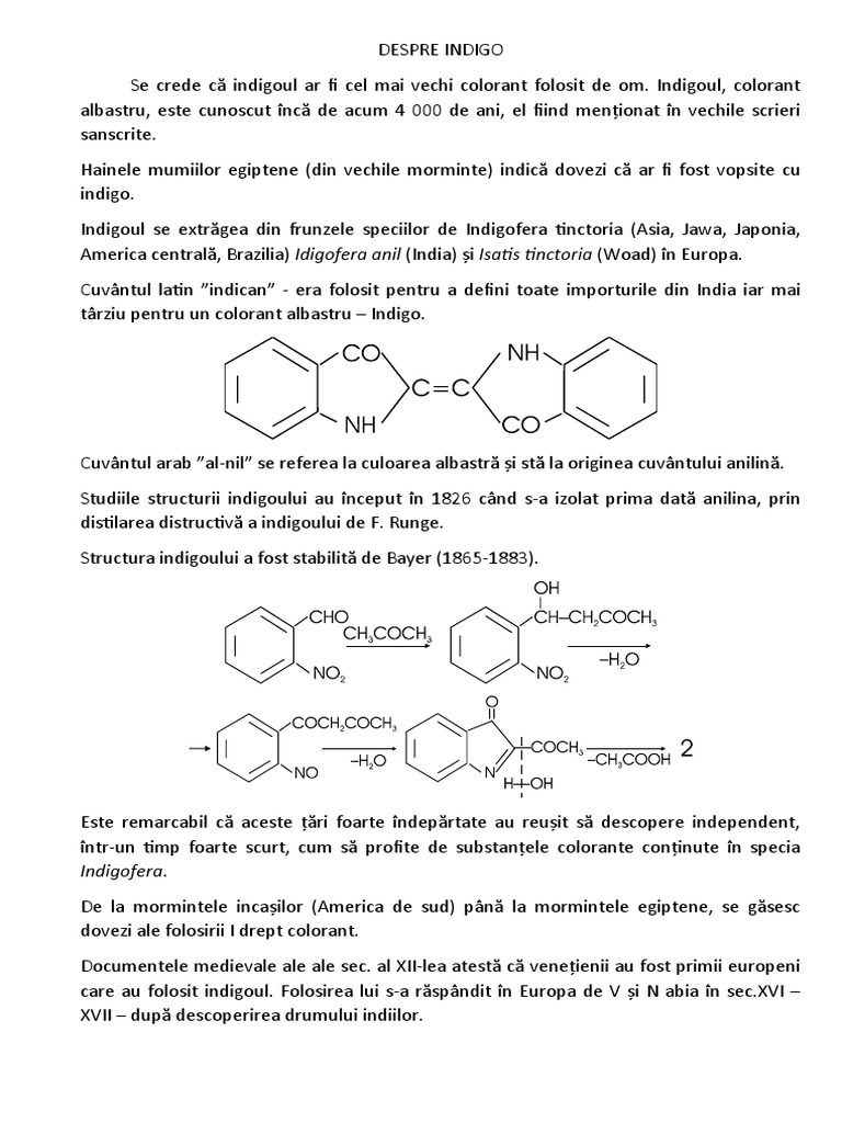 Structura indigoului a fost stabilită de Bayer (1865-1883).
