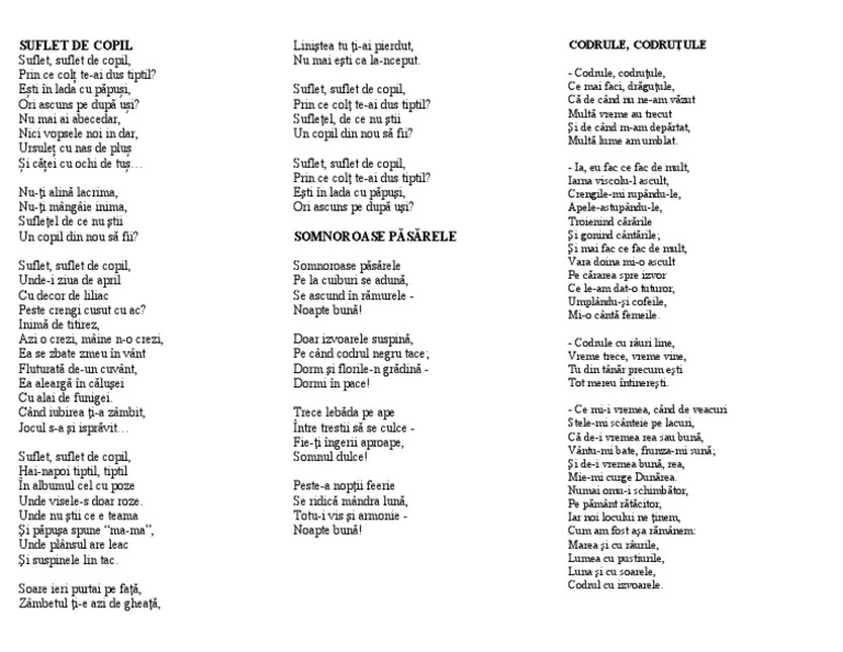 SUFLET DE COPIL Liniştea tu ţi-ai pierdut, CODRULE, CODRUȚULE