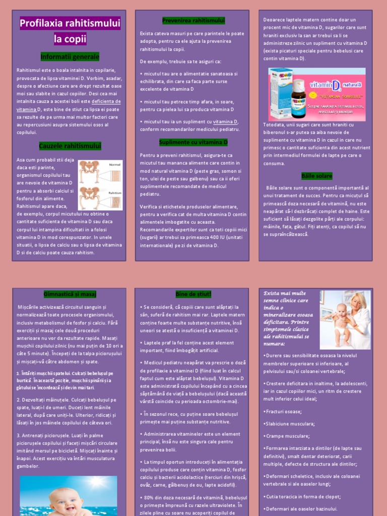 de profilaxie a vitaminei D (fiind luat în calcul pelvisului sau/si coloanei vertebrale;