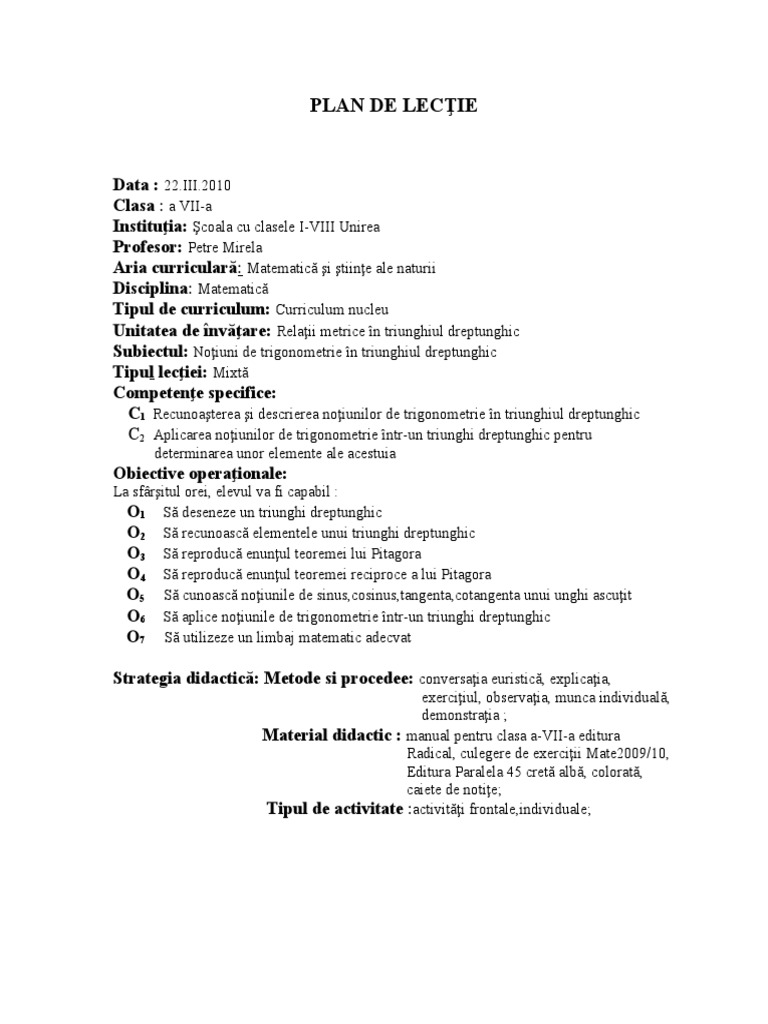 temei şi a trigonometrie în triunghiul dreptunghic” iar la sfârşitul