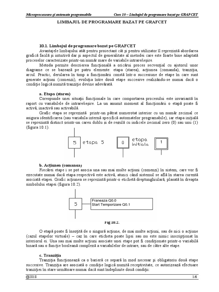 Microprocesoare şi automate programabile Curs 10 – Limbajul de programare bazat pe GRAFCET