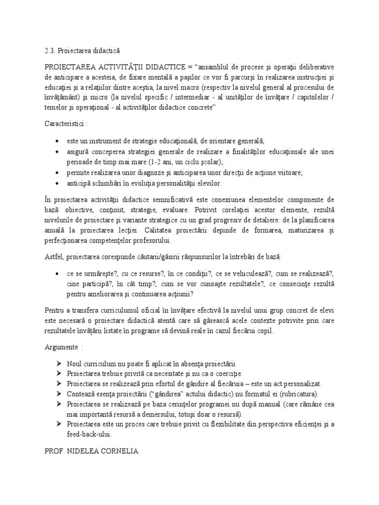 Proiectarea se realizează pe baza cerinţelor programei nu după manual (care rămâne cea