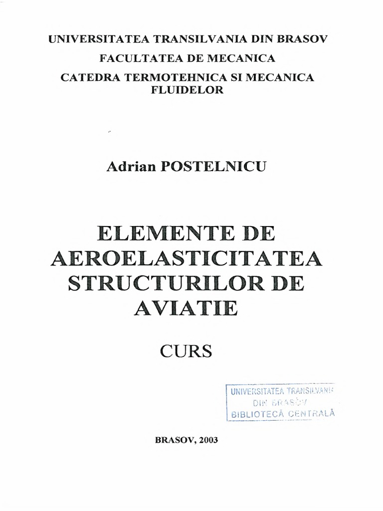 extrem de complexe, care este Aeroelasticitatea Structurilor de Aviatie. Abordarea acestei discipline