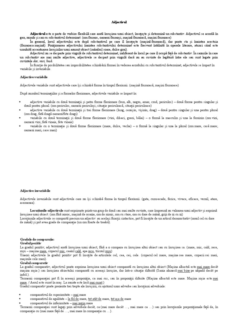 Adjectivul este o parte de vorbire flexibilă care arată însușirea unui obiect, însoțește și determină un substantiv. Adjectivul se acordă în