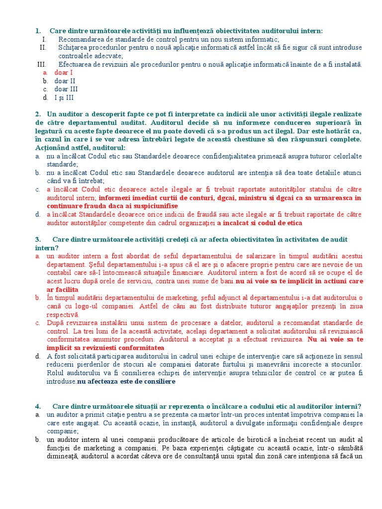 5. O companie şi-a desfiinţat departamentul de audit intern şi a recurs la externalizarea funcţiei