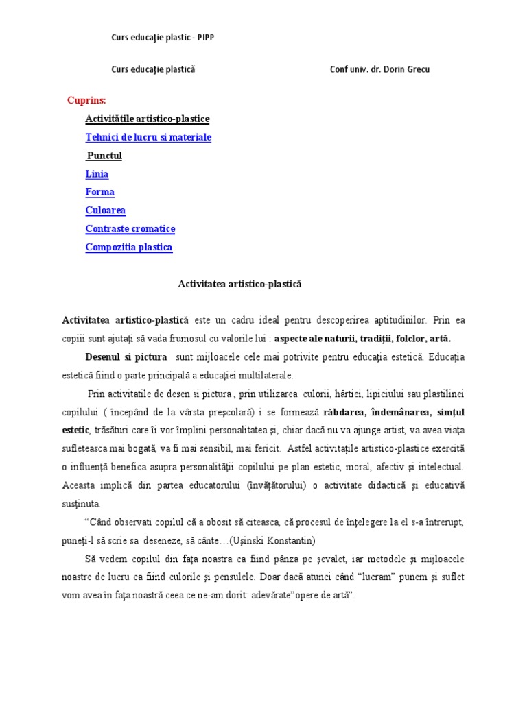 Curs educaţie plastic - PIPP