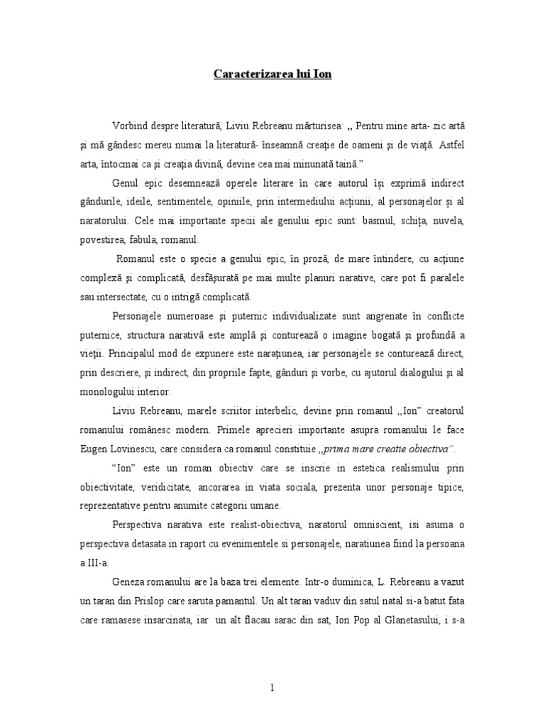 determinat social şi are o psihologie complexă, urmărită în evoluţie. Ion este un exponent