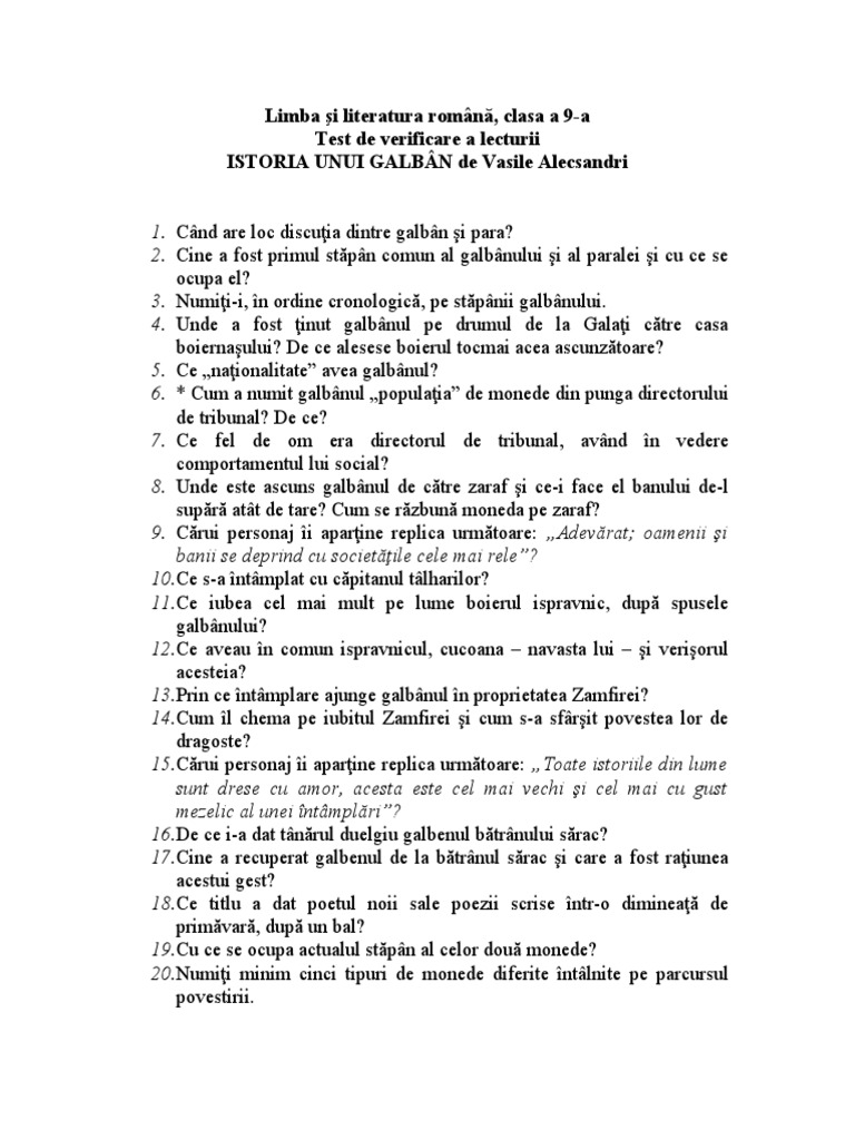 ISTORIA UNUI GALBÂN de Vasile Alecsandri