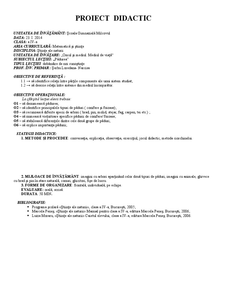 PROIECT DIDACTIC