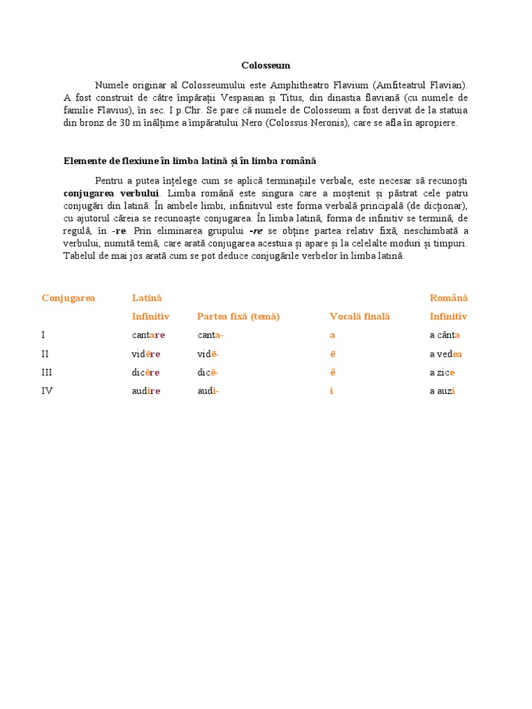 conjugări din latină. În ambele limbi, infinitivul este forma verbală principală (de dicționar),