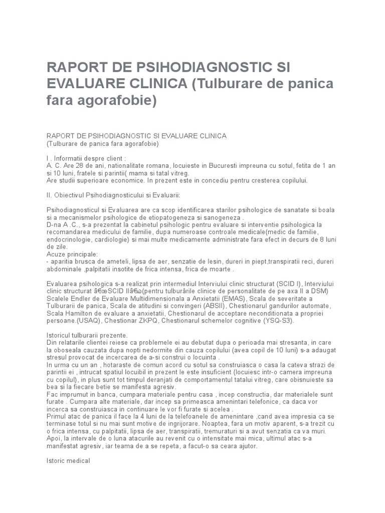 RAPORT DE PSIHODIAGNOSTIC SI EVALUARE CLINICA