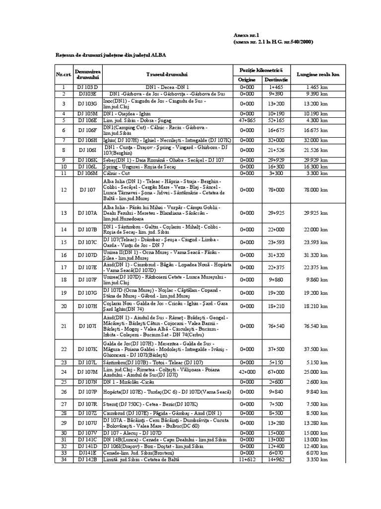 7 DJ 106H Ighiu( DJ 107H) - Ighiel - Necrileşti - Intregalde (DJ 107K) 0+000 32+000 32.000 km