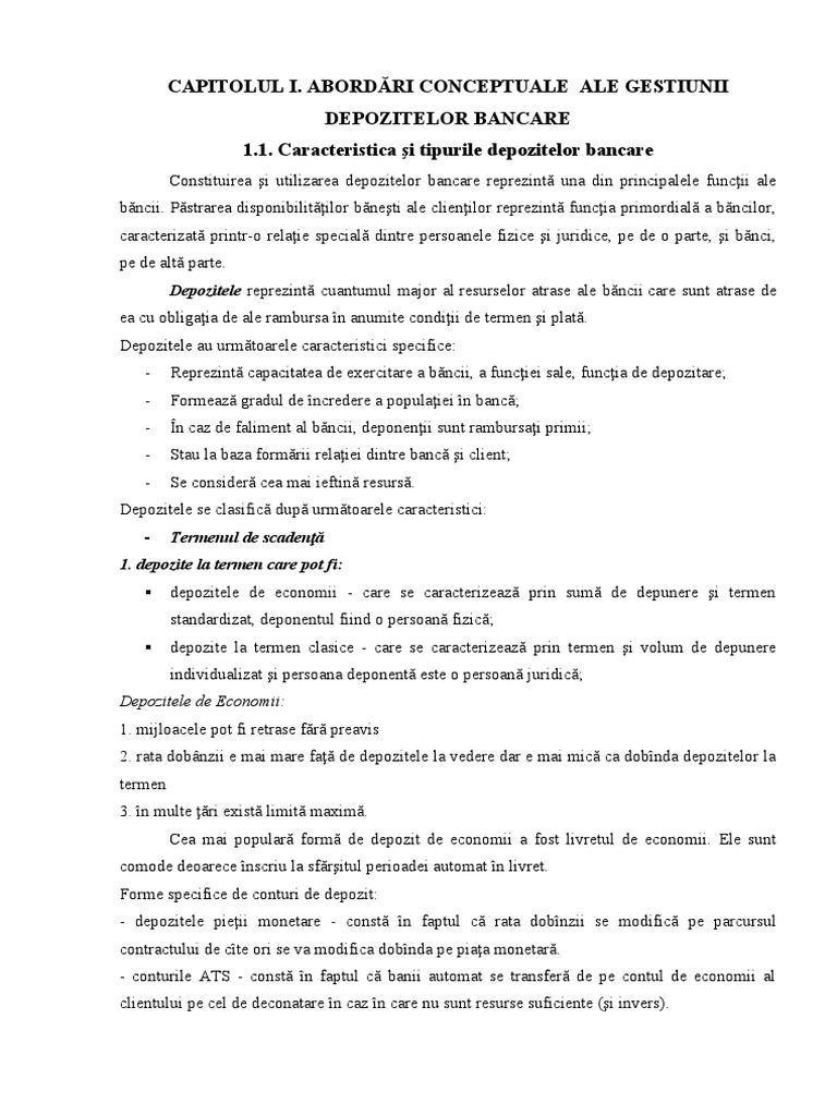 - Prin intermediul depozitelor se realizează posibilitatea de economisire a populaţiei
