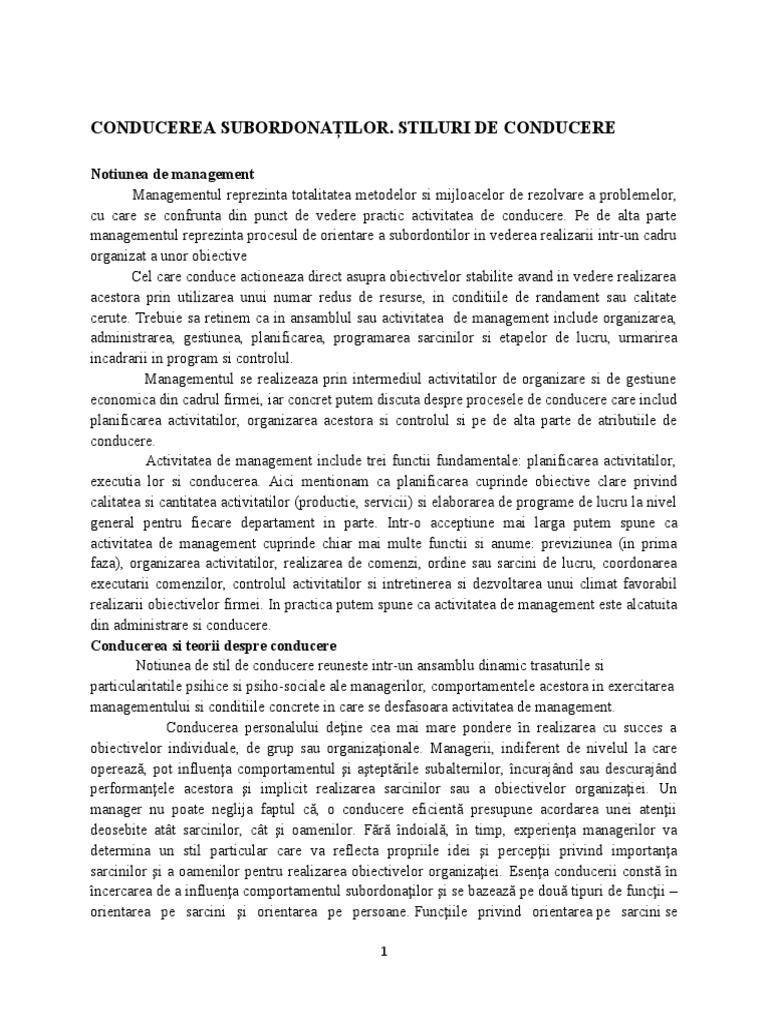 managementul reprezinta procesul de orientare a subordontilor in vederea realizarii intr-un cadru