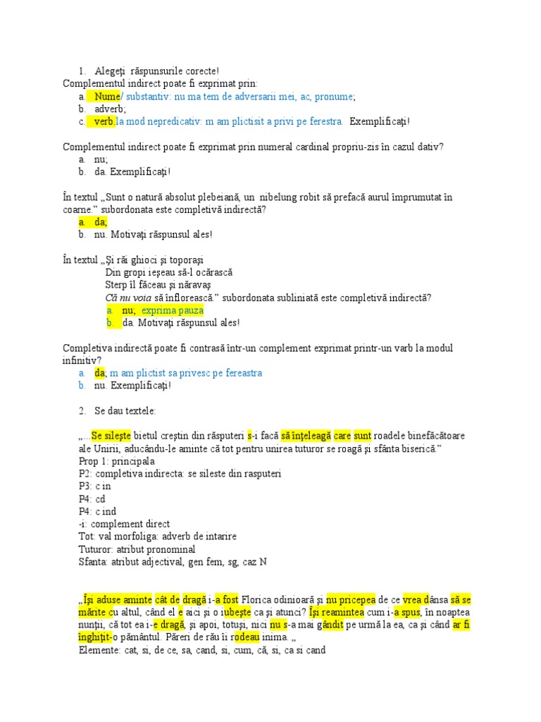 b. extrageţi din aceste texte complementele indirecte şi analizaţi-le;