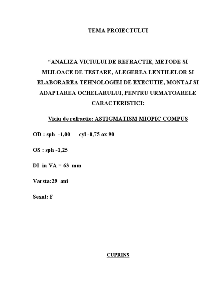 6. 2. Lentila necesara corectiei problemei vizuale din tema;
