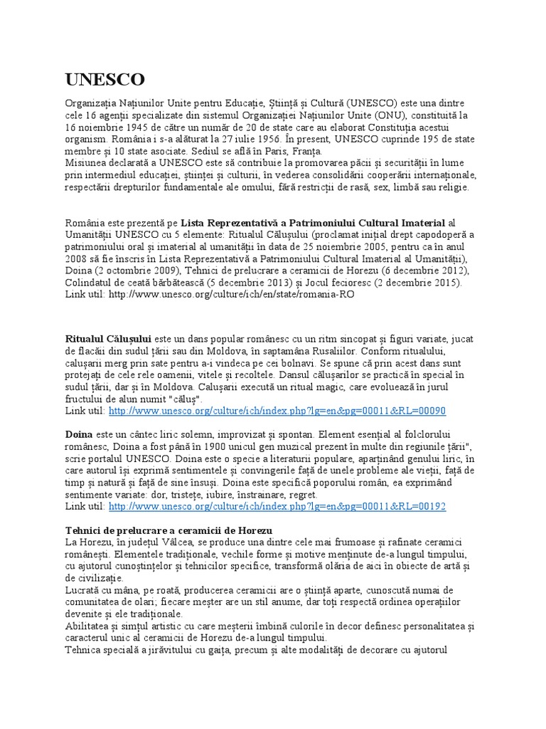 2008 să fie înscris în Lista Reprezentativă a Patrimoniului Cultural Imaterial al Umanității),