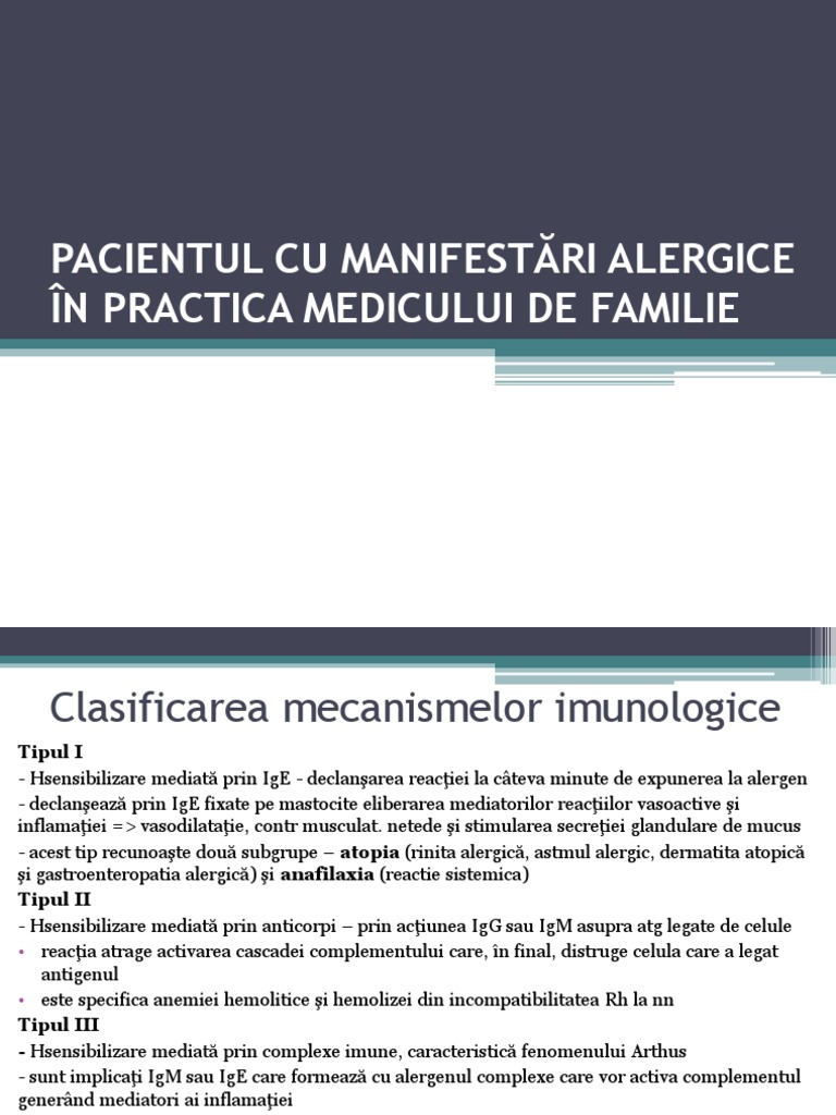 PACIENTUL CU MANIFESTĂRI ALERGICE