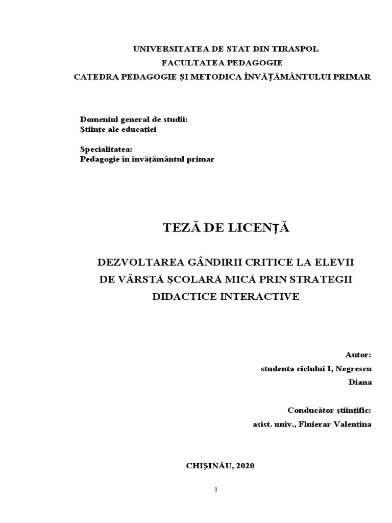 didactice interactive orientate spre dezvoltarea gândirii critice la elevii de vârstă