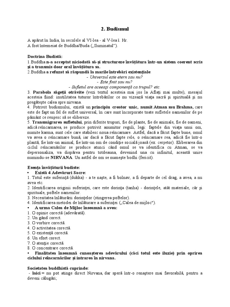 4. Potrivit budismului, există un principiu creator unic, numit Atman sau Brahma, care