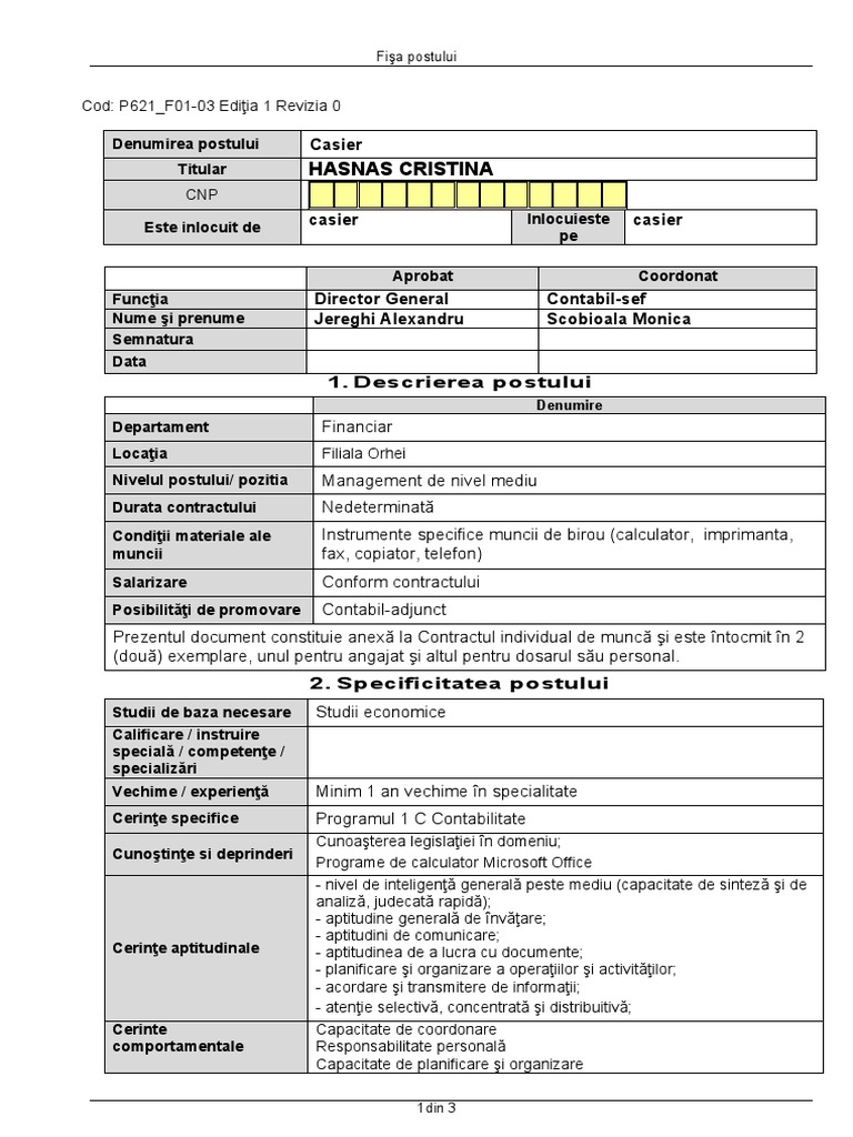 competenţe angajat, se conformează atribuţiunilor din fişa postului a persoanei