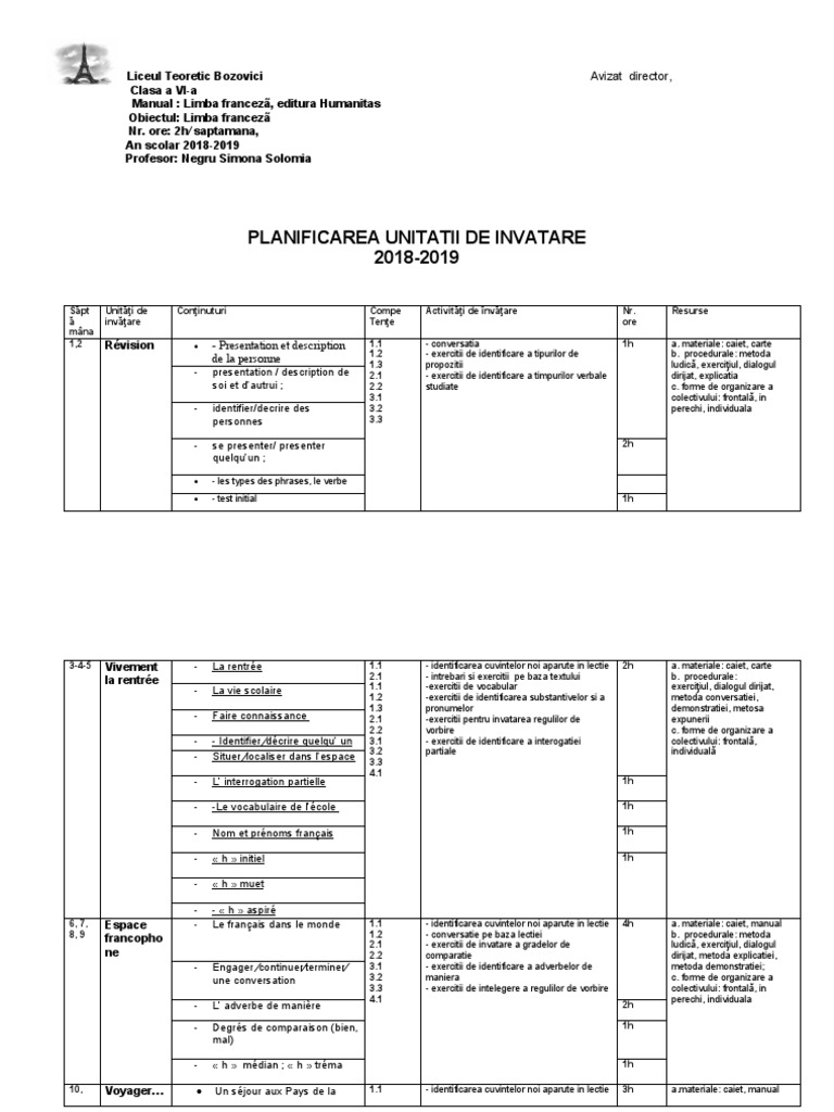 1,2 Révision - Presentation et description 1.1 - conversatia 1h a. materiale: caiet, carte