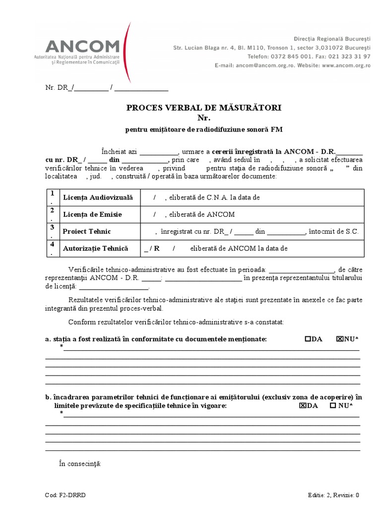 Cod: F2-DRRD Editie: 2, Revizie: 0