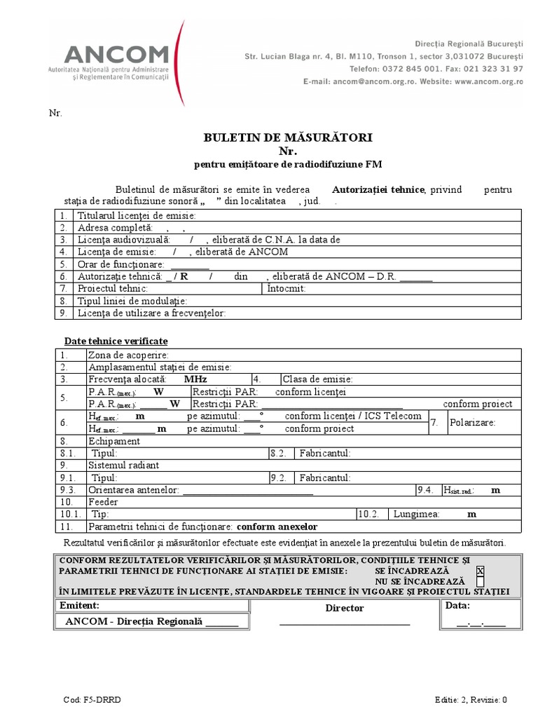 Cod: F5-DRRD Editie: 2, Revizie: 0