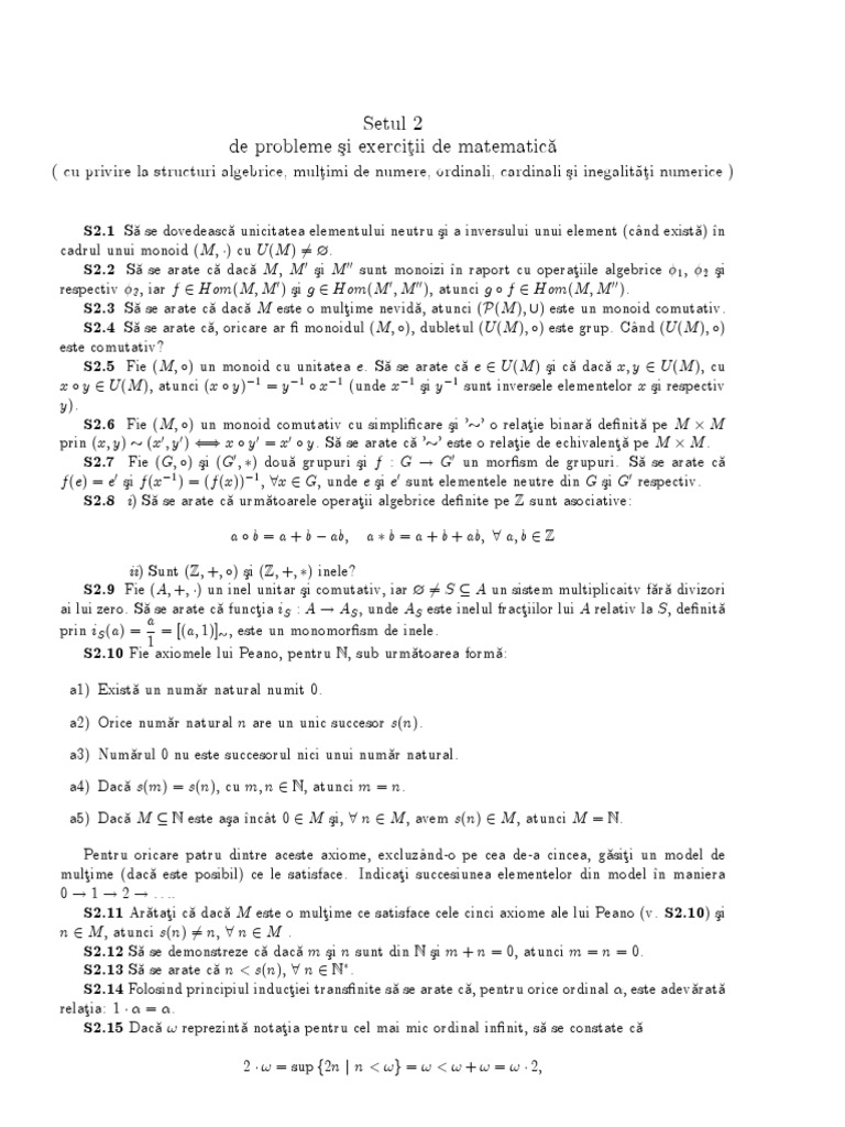 S2.4 Sa se arate ca, oricare ar monoidul (M; ), dubletul (U (M ); ) este grup. C^and (U (M ); )