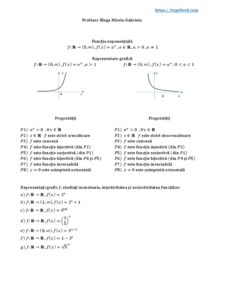 Reprezentați grafic , studiați monotonia, injectivitatea și surjectivitatea funcțiilor: