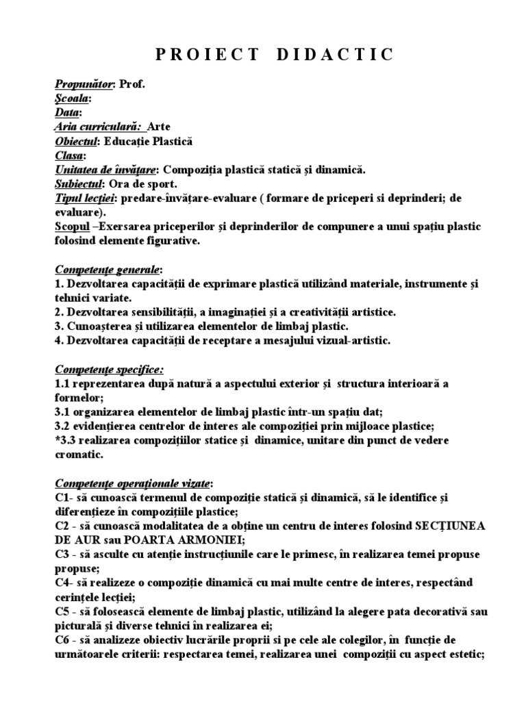 Unitatea de învăţare: Compoziţia plastică statică şi dinamică.