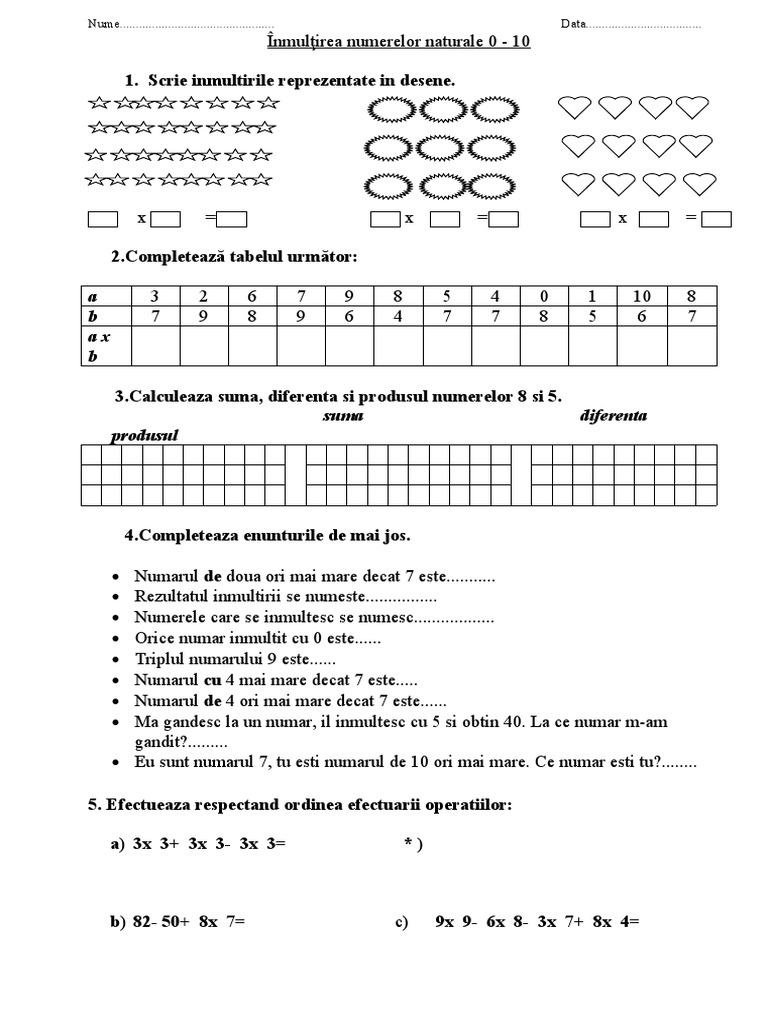 [Link] suma, diferenta si produsul numerelor 8 si 5.