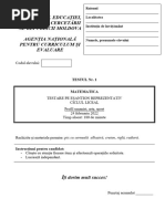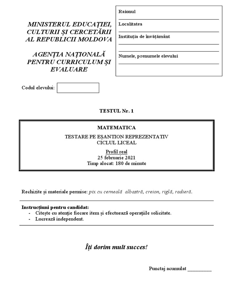 Rechizite și materiale permise: pix cu cerneală albastră, creion, riglă, radieră.
