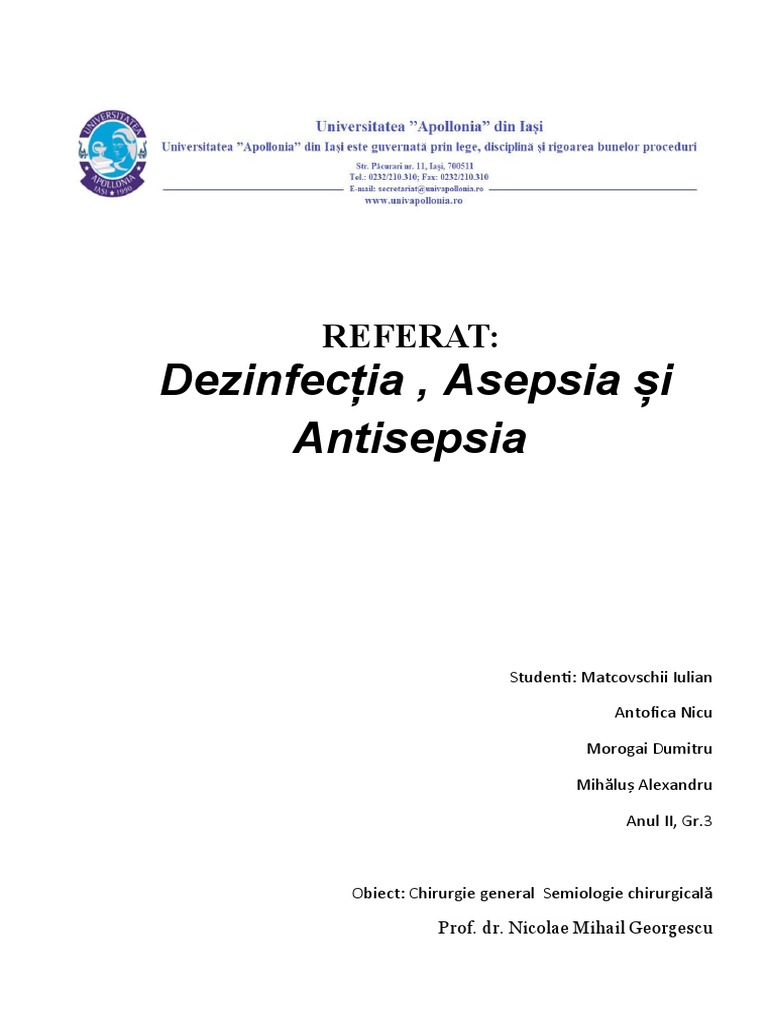 dezinfecție și asepsie, întrucit prin dezinfecție se realizenză In mare mäsură asepsia.