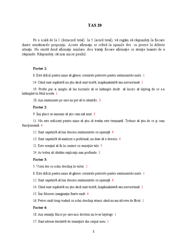 8. Este dificil pentru mine să găsesc cuvintele potrivite pentru sentimentele mele. 1