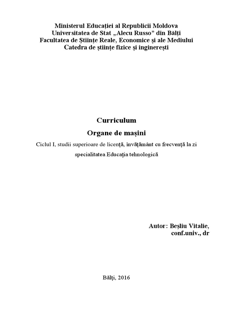 Curriculum-ul a fost aprobat la şedinţa Catedrei de științe fizice și