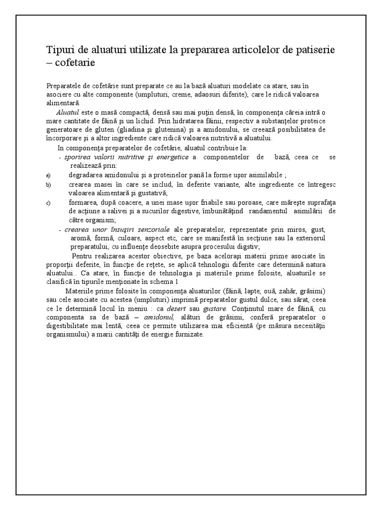 aluatului.. Ca atare, în funcţie de tehnologia şi materiile prime folosite, aluaturile se