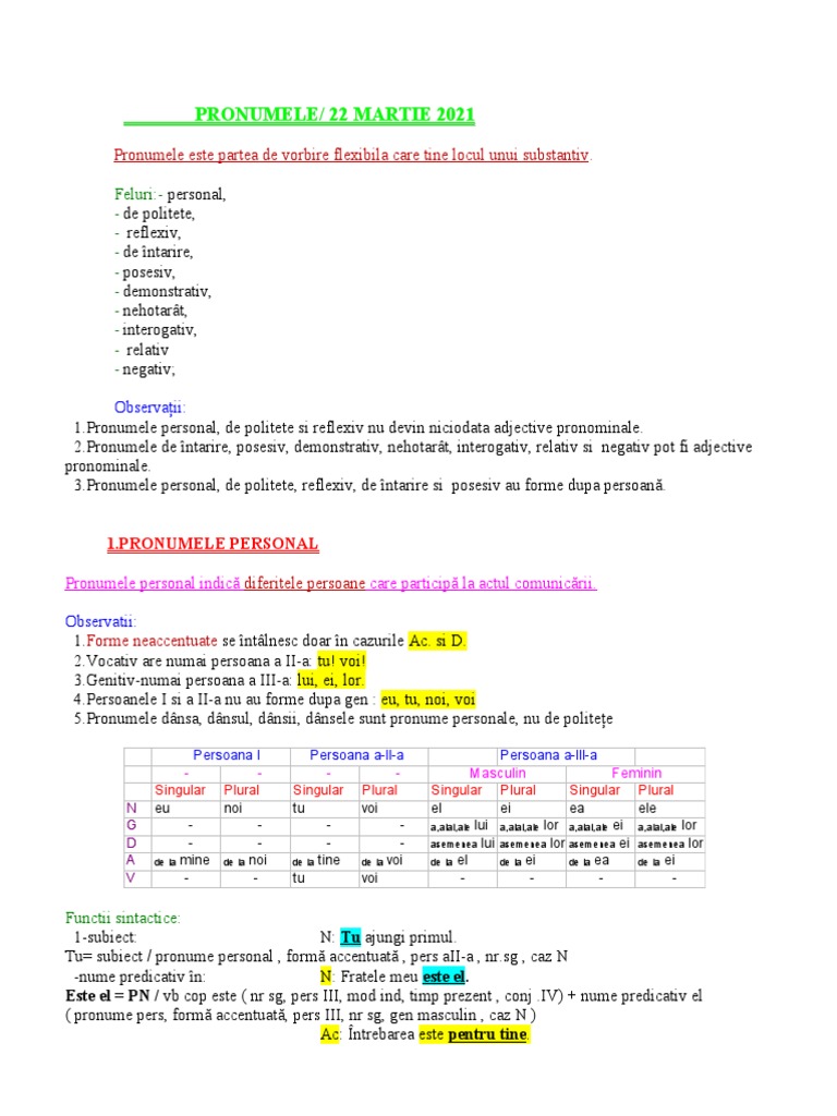 [Link] personal, de politete, reflexiv, de întarire si posesiv au forme dupa persoană.