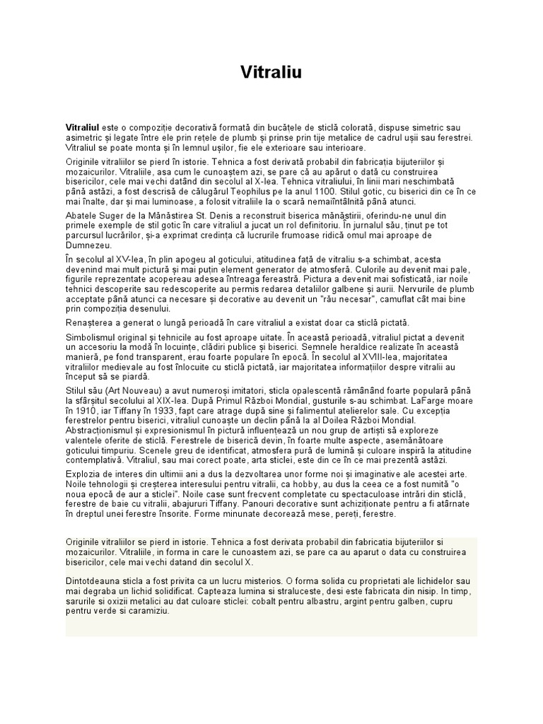 aplicate vopsele si emailuri tratate termic in cuptoare. Din punct de vedere al laturii artistice vitraliile