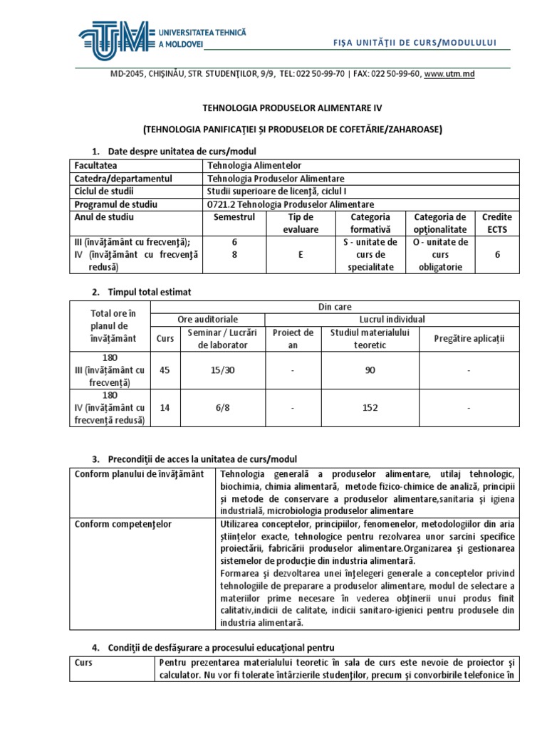 TEHNOLOGIA PRODUSELOR ALIMENTARE IV