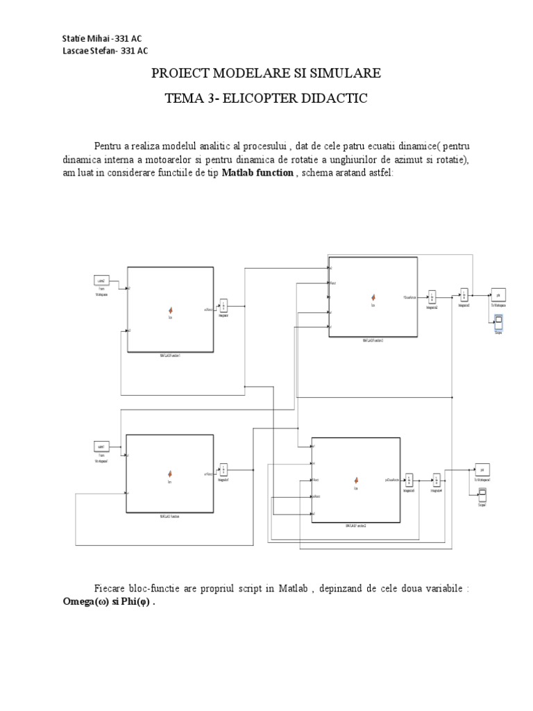am luat in considerare functiile de tip Matlab function , schema aratand astfel:
