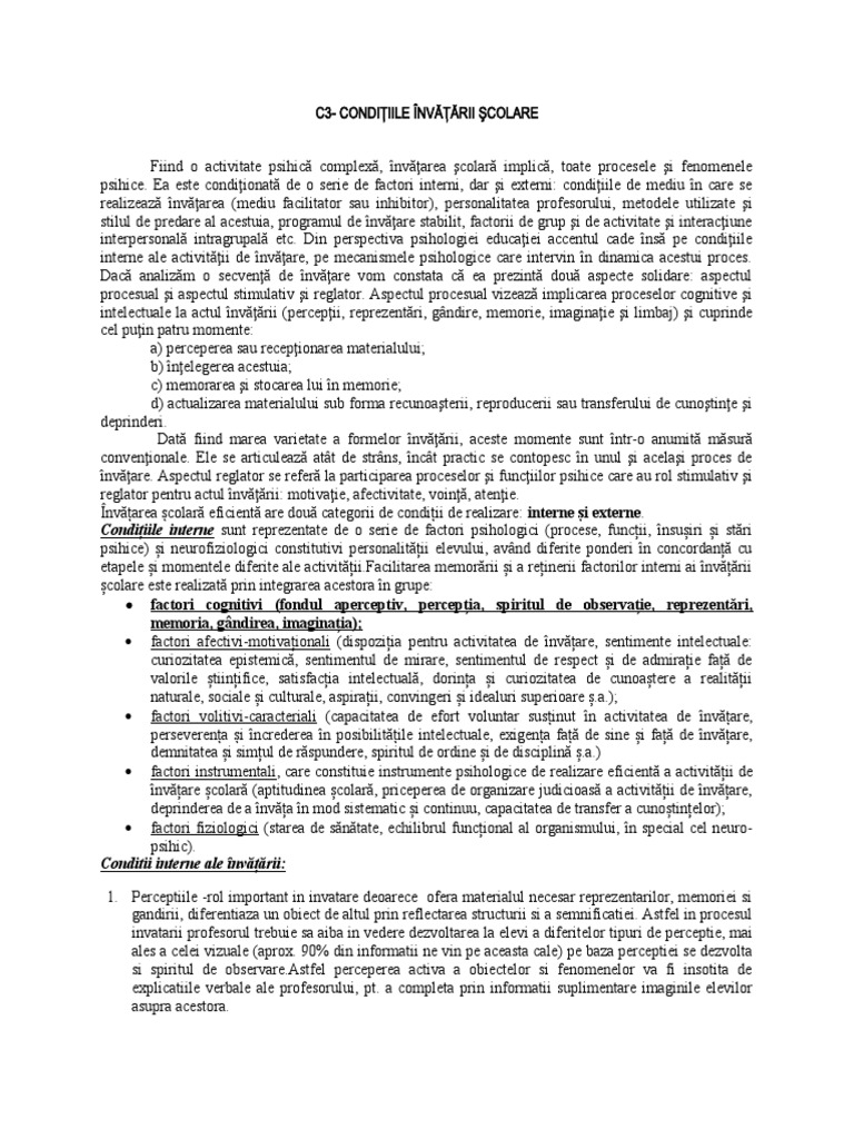 c. Factori psihici : nivelul de inteligenta, aptitudinea scolara, aptitudini speciale, spiritul de observare etc.