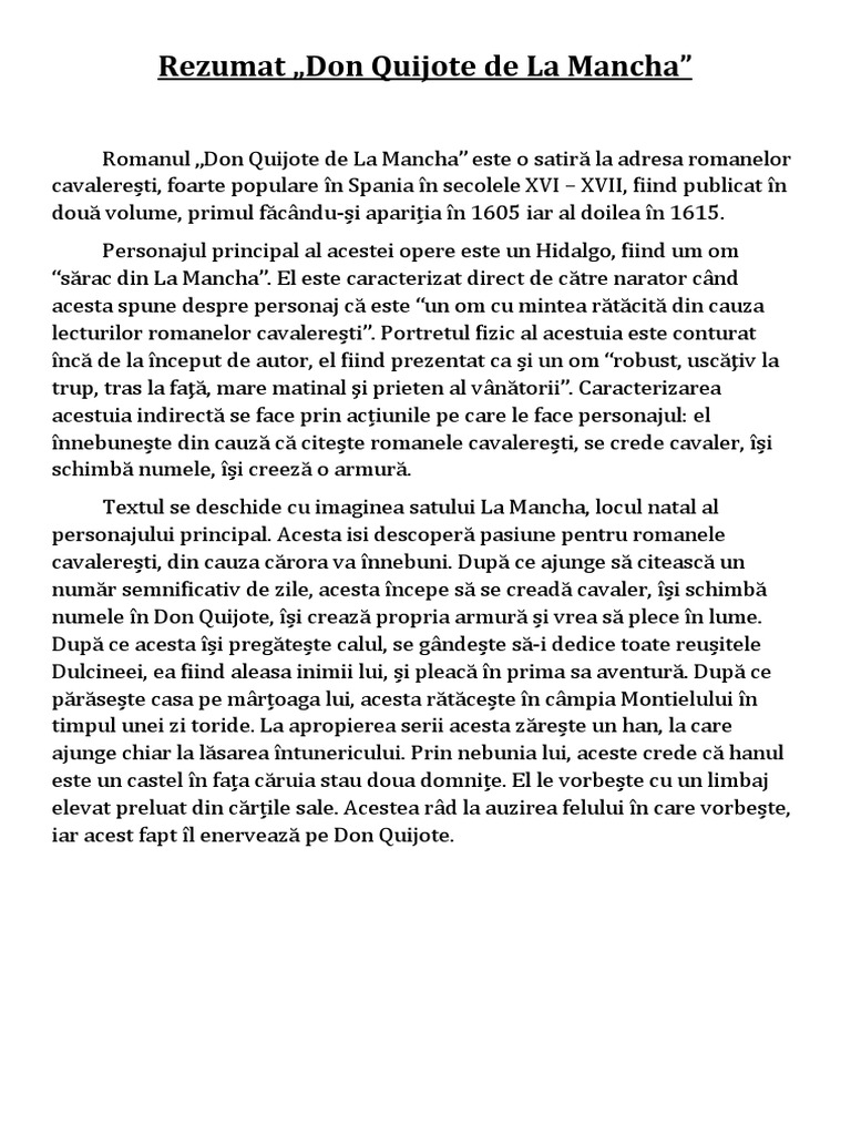 Rezumat „Don Quijote de La Mancha”