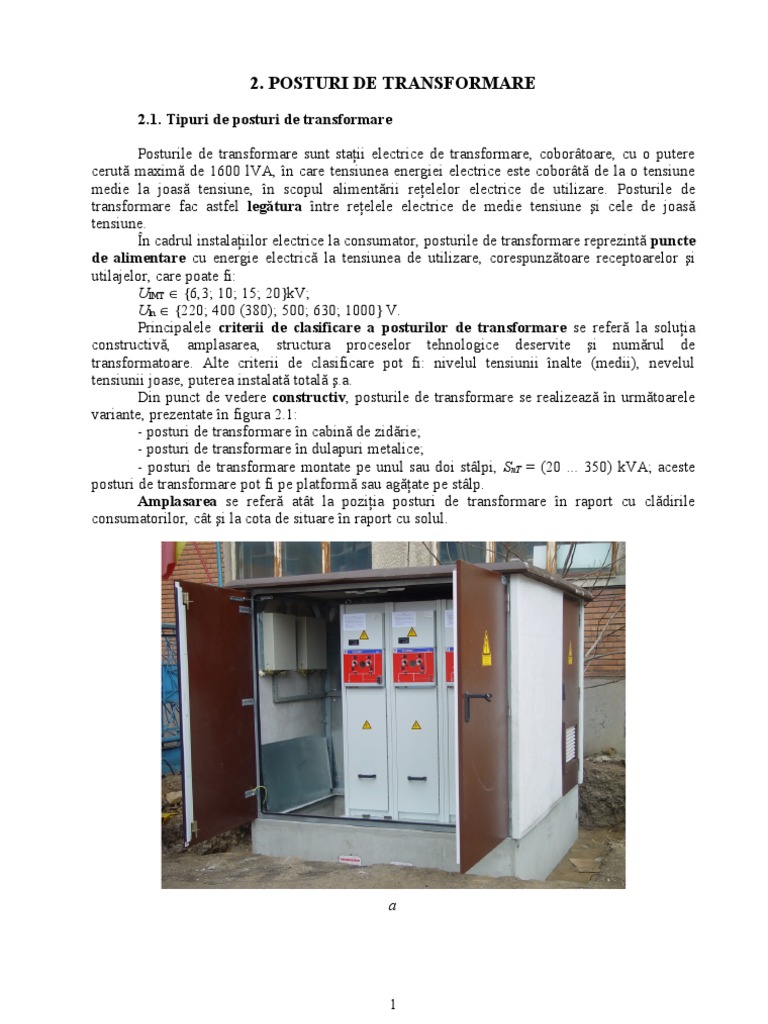 Celulele de bază ale posturilor de transformare sunt cele care conţin transformatoarele de