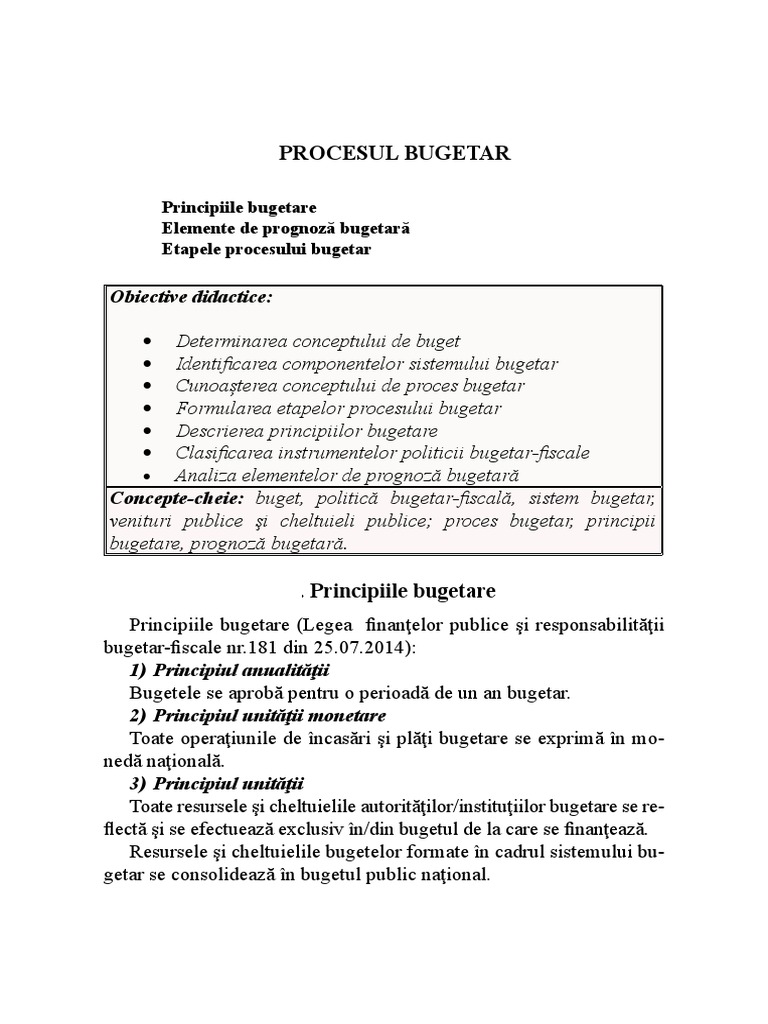 venituri publice şi cheltuieli publice; proces bugetar, principii